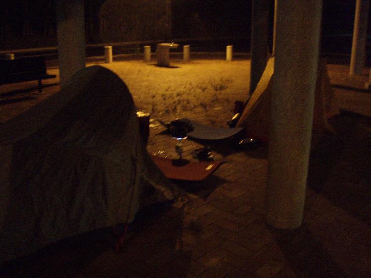夜中から土砂降りの予報だったので、フェリー乗り場前の屋根の下をお借りしました。この後雷雨が物凄かったです・・・。