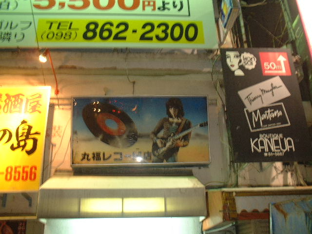 福岡を夕方の便で脱出。約ひと月ぶりの那覇ナイト。写真は国際通りのレコード屋。ジェフさんですね。
