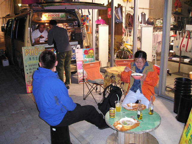 ノースフェイスストアの前に週末だけ出現するベトナムの麺「フォー」の移動キッチン。