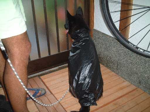 ロッキーの散歩も大変だ。雨でも構わず遊ぶヤツだが、そのあと家の中に入れるのが大変なのだ。