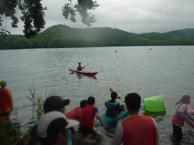 いよいよ競技開始。第1レグはカヤックだ。これだけはトップで通過のつもりが最後にレース艇に抜かれた・・・。