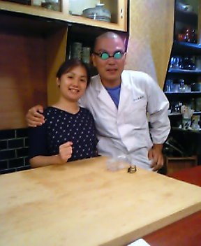 写真はなにわ鮨の尾林ご夫妻。約束通り写真のっけましたよ!ご主人はスイマーなので・・・ゴーグルです。