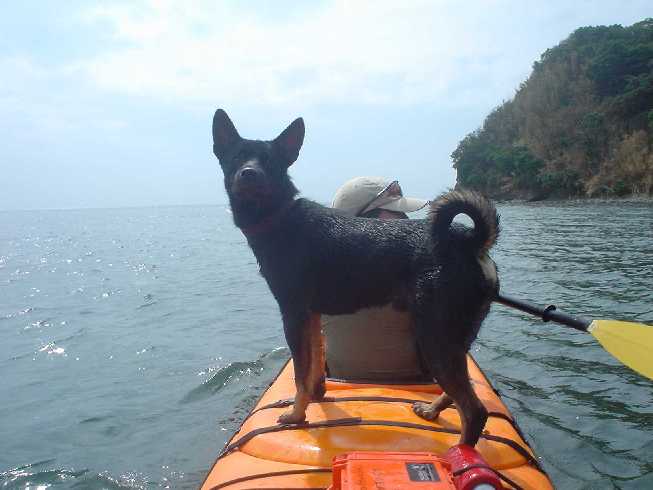 最近はカヤックにも慣れてきたロッキー君。余裕カマしてます。