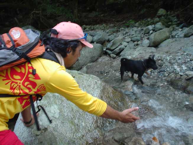 水大好きのロッキーも、岩からズリ落ちたりするうちに警戒モード。慎重派になって必死について来ました。