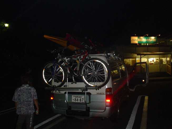 シーカヤック・MTBを積み込み約12時間の長旅だ。朝出て現地到着は深夜だが、キッチリ島美人(今や貴重品の焼酎)を飲んで就寝。