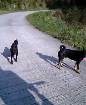 トレイルの下見に同行したロッキー君と、手前はランドアースキヨシ君とこのラブ君。