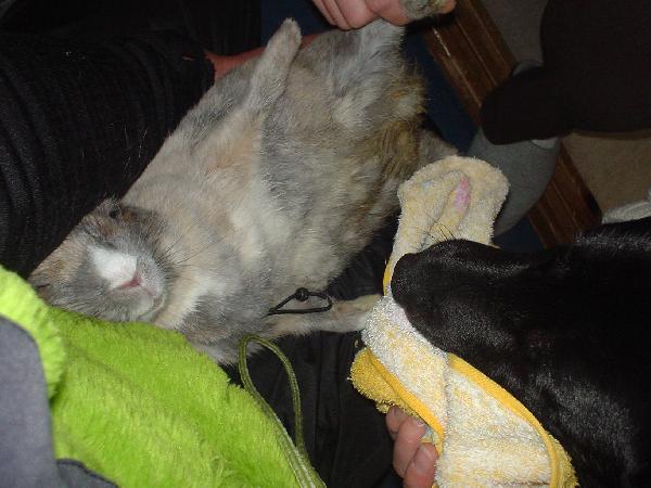 ウサギのマコちゃん、関節炎以外は回復に向かいつつあります。いつも以上の食欲で、ブクブク太ってる・・・。このままいくと肥満で立てないかも?ただいまダイエット&リハビリ中。手足を持って動かしてやるのです。介護って大変です。