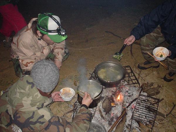焚き火を囲んで飲むが、やはりサムい・・・。