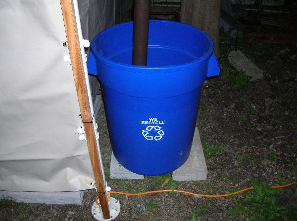 んで、大量の水がこの巨大バケツに溜まる、はず!その水をケルヒャー製高圧洗浄器でぶわっ、との計画。