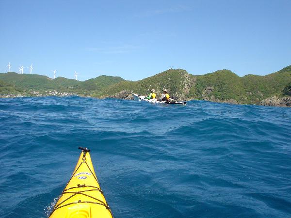 しかしその後、岬をまわると結構なうねり!東シナ海のうねりはパワーがあります。写真撮るのも大変。みんなマジメに漕ぎました。