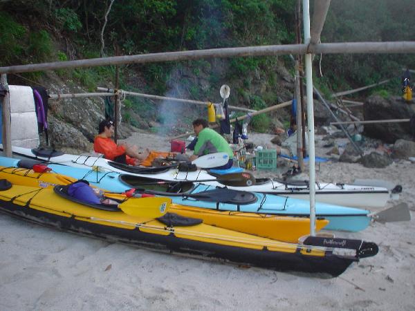 この日は大潮で、写真のカヤックの所ギリギリまで潮が満ちてきてなかなかスリリングなキャンプでした。
