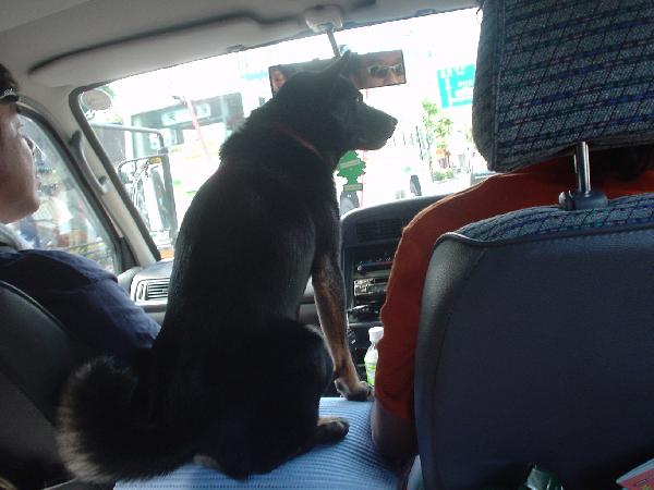 ロッキーの最近の定位置です。すごく座りにくそうだけど、後ろではお客さんが爆睡してるのでここでガマンなのだ。