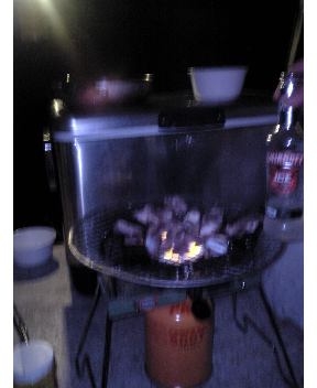 五ヶ瀬川の上流の川原でキャンプしてましたが、夜半、豪雨の為心配になりクルマを高いところへ移動する。ま、涼しくていい夜だ・・・。