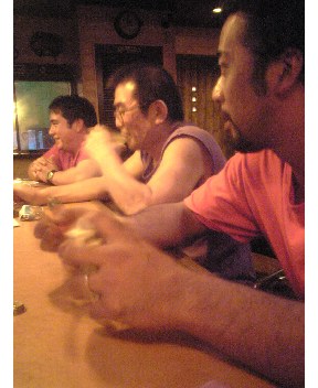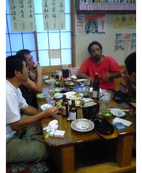 佐世保カヤック界の重鎮、USA氏のお宅にチェックイン~!んで、佐世保ナイトなんです。FREEDOM岡本氏、yu-ji氏も合流して飲んでます。