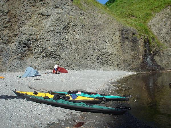 超快適なビーチを発見したので今日のキャンプはここに決定!背後の崖から冷たい清水が流れ落ちる理想的な場所です。