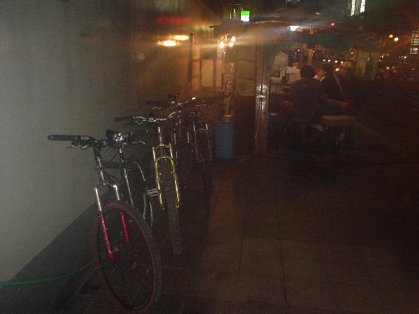 夜は夜で、博多ナイトの撮影で中州を爆走。自転車乗りにはおなじみの屋台「ぴょん吉」です。