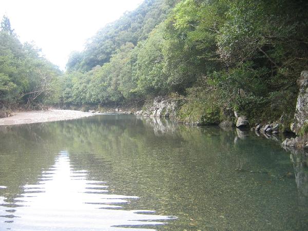 玉砂利の上を流れる清流。潜るとゴリ、アユカケ、テナガエビなどがいた。たまに季節外れの鮎も。真夏でもウェット着ないを長時間は潜れない。