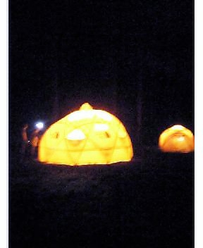 ライトアップされたノースフェイスのツーメータードーム。「つや~」な感じ(博多弁で「カッコつけ、の意」)です。