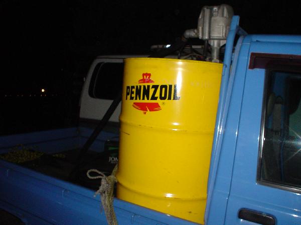 GS勤務のA君が乗ってきた軽トラ。イカすドラム缶が乗ってました。