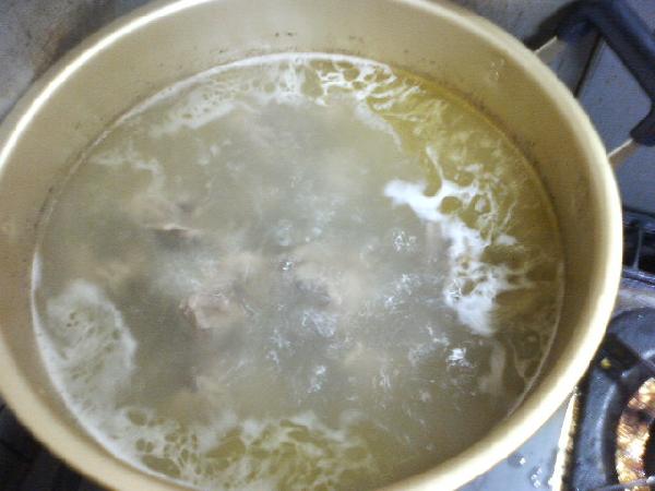 白濁したトンコツスープみたいなのができました。濃い。
