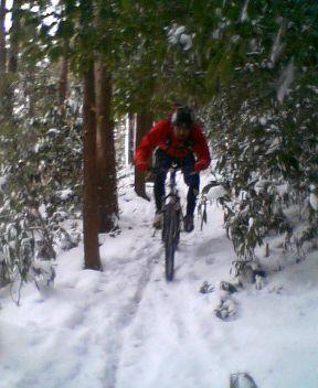その後はウッヒョ~!!です。固まっていない雪は意外に走れるもんなのです。下りは。良かった良かった・・・。