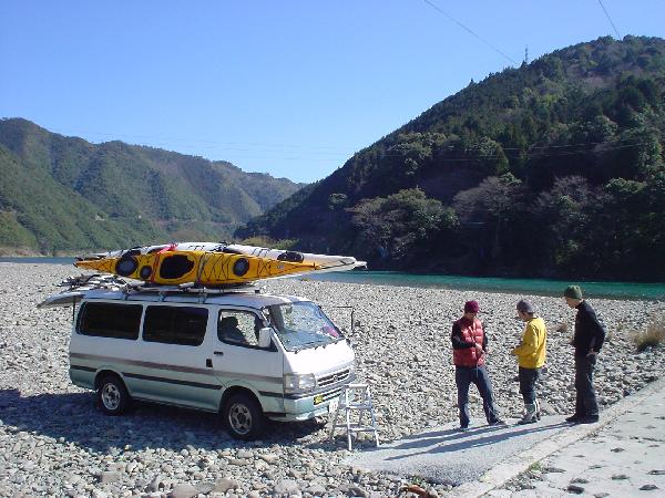 帰る日になると風も止み、絶好のカヤック日和。こんどは土佐の海も漕ぎたいな~と言いつつ川原でカヤックを回収。