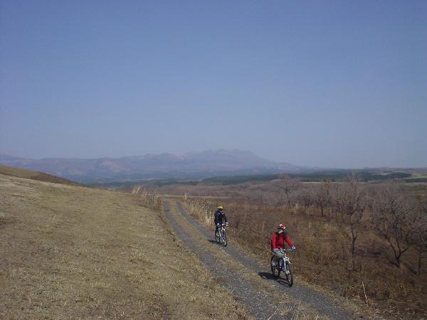 野焼きが終わったばかりの牧道を走ります。5月にはこの草原も一面の緑になるでしょう。