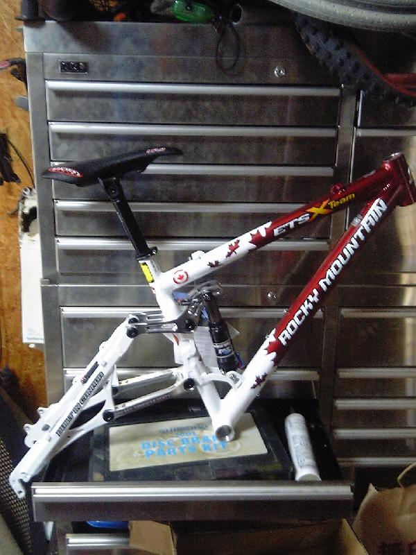 Rockymountainの最新作が到着しました。ETSX-Teamです。従来品と違うのは前三角がスカンジウム製な事です。あっベアリングボルトも中空のオリジナル品になってますな。ダウンチューブには控えめなEASTONロゴと、「組み立て(溶接)責任者」のサインが入ってます。バンクーバーの自社工場で丁寧に造られたナイスガイ。