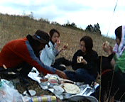 このために歩いて別ルートから食材を担ぎ上げた黒いガイド(私)が黙々と調理します。と見せかけてビール飲んでます。今日は走らんからね。助手はロッキーです。平均年齢のあまりの若さに戸惑い気味!