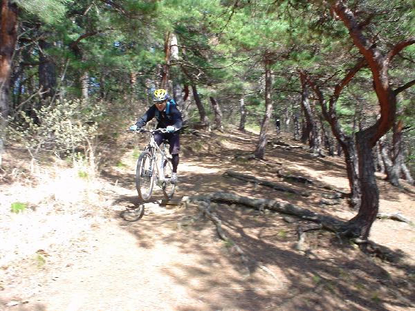 下り終えるや否や、次のトレイルへ。今度はさらに標高があがり、白樺の林の中を走ります。まさにヘルタースケルターです。