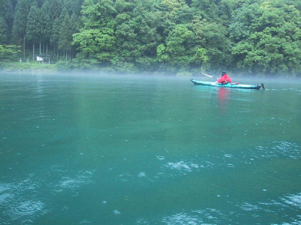 岬の影に入るとこれだけ静かです。朝霧が美しい。