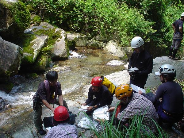 現在地をキチンと把握しながら進みます。皆さん初めての経験に緊張気味。