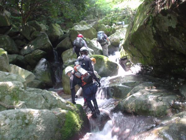 道ではないところにルートを求めながら歩くのはカイカンですな!標高差約700メートルをグングン上がります。水の流れに苔むした岩・・・。これは完全に「和」テイストな遊びですね。