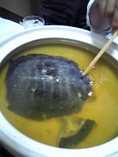 イカ徳利マン他オトコ4人でスッポンを食べた。初体験です。から揚げがウマかった。鍋は深みのあるダシが出ておりました。