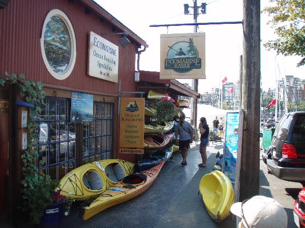 今日はバンクーバーをうろつく。レンタカーでグランビルアイランドへ。「エコマリン・シーカヤックセンター」を訪問。シーカヤックのすべてはここから始まった!訳ではないけど、ほとんどそう言い切れるショップです。創設者はジョン・ダウド。