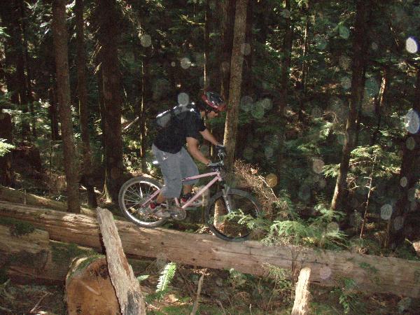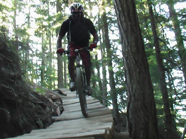 そしてカナダといえば、このラダーにログ(丸太)ライド。写真のはかなりイージーなヤツですが、これより細~いのやら高度感バリバリのものまで。ビビリが入って行けないのが多数・・・。技術的には行けるはずなのに、精神的にヤラれてしまうのです。ヘコみました・・・。ラダー&ログ&ドロップオフを完全にマスターしないと、ここいらのトレイルは100パーセント楽しめません!課題だ~!