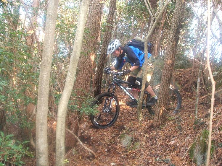 その後は自然林の中をクネクネ下るシングルトラックです!時には0.8トラックくらいになります。アンディー君さすがですな・・・。ロッキー(イヌ)も絶好調で先頭を駆けていきます。