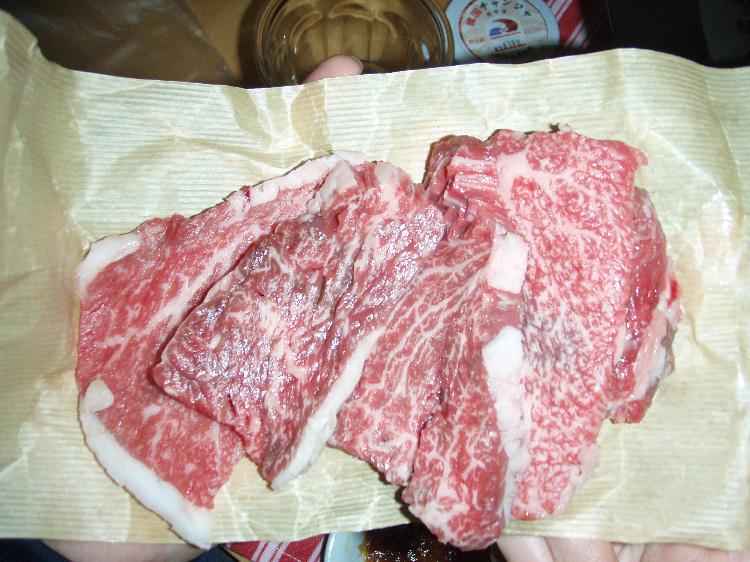 ・・・ニクも食べます。我が愛する精肉店、「肉のくまもとや」のカルビです。絶句しますよ。これだけの霜降り君なのに、クドくないのが不思議。僕は脂っこい肉は苦手ですから・・・。