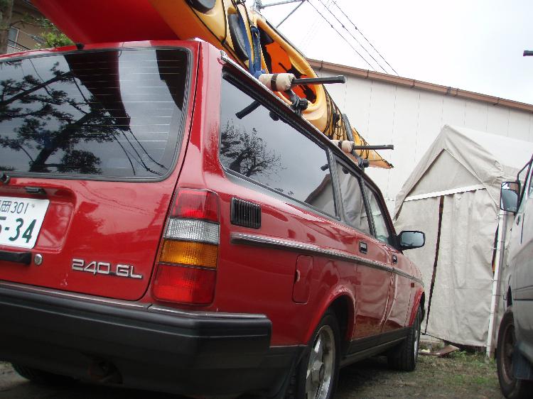 次の車は様々な検討の結果も空しく、ボルボ240を衝動買い。だってもっと新しい型のボルボより高いんだもんな~(僕の場合、新車は選択支にありません)。ま、ステーションワゴンが欲しかったのです。ハイエースはいいクルマだけど、少ない艇数のカヤックを積む場合、車高が高くて積む作業がダルいのです。