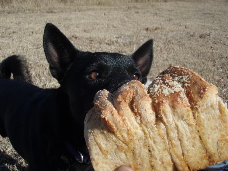 焼きたてのチーズの香りに誘われて・・・。お前にはやらん!
