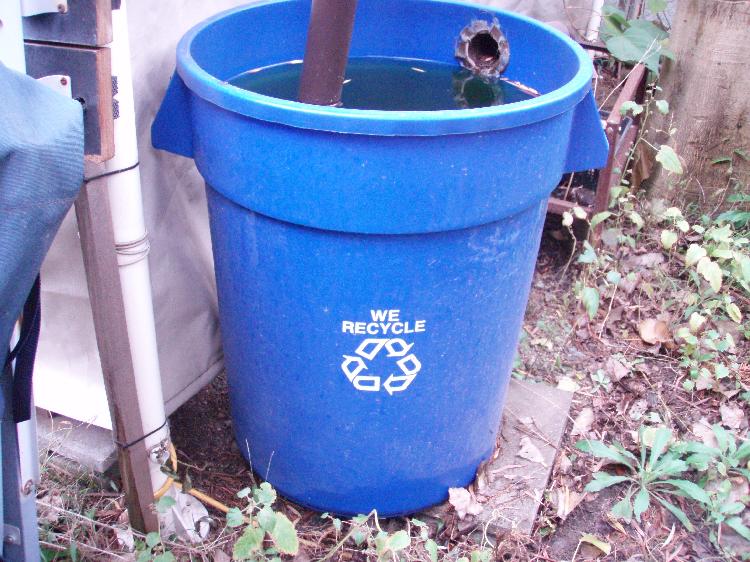 コイツを使うと判るのですが、ドロドロバイク1台を洗うのに水がバケツ一杯分も要りません。経済的です。ま、ウチの場合雨水貯め貯めシステム「ロハスちゃん1号」(写真。カヤック倉庫の雨樋から水を集めます。もう1台「ソトコトちゃん1号」もあり)で日々雨水を貯めているのでタダですが!