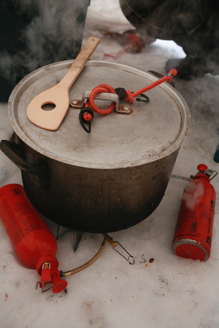 朝。オカユを作ろうをお湯を沸かすも、なかなか沸きません。ナベがデカい(バーナーの火口に対して)のと外気温が低いのが原因です。
