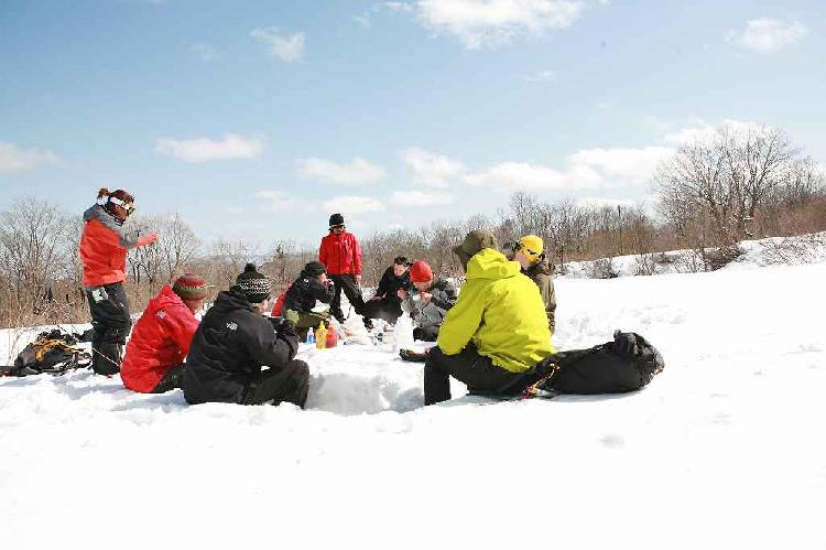 雪でテーブルを作ってホットドッグのランチ。なんか「ビー○ル」みたいですね。