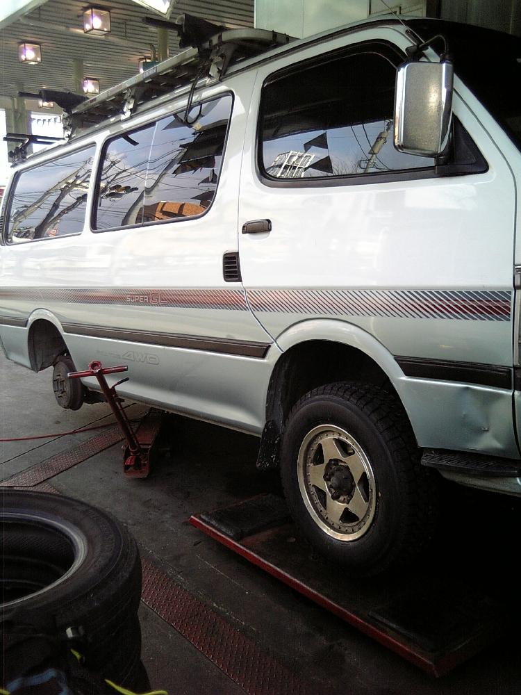 ハイエースのタイヤを新品スタッドレスに交換。昨年までは使い古したカチカチのヤツをしつこく使っていたのです。さすがにアイスバーンでは滑りはじめていました。