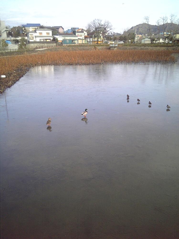 水に浮かぶことが出来ず、氷の上を「所在無さげ~」にウロつくカモ君たち。なんかウケる。