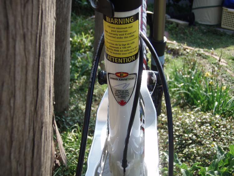 EASTON&メイプルリーフのデカールには溶接責任者のサインが。これはRockymountainの全グレードに付けられます。自信と信頼の表れですね。
