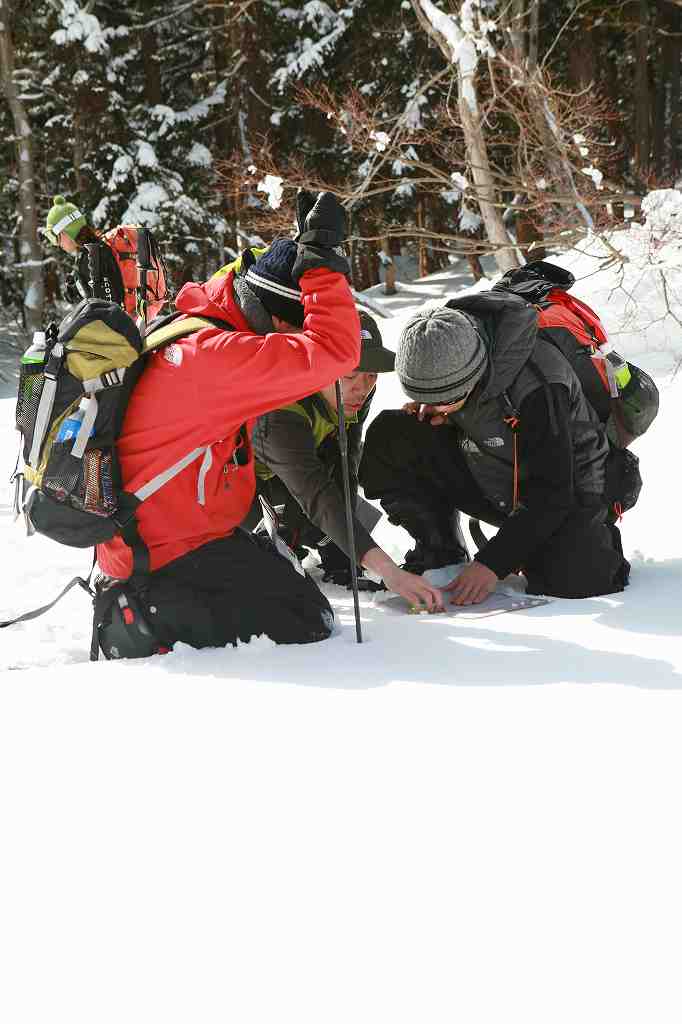 雪上での読図はコンパスの角度切りが重要になってきます。基本的に道は雪の下ですからねー。海上でのコンパスワークに、等高線の情報がプラスされる感じです。