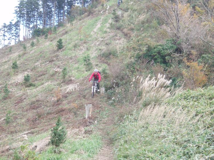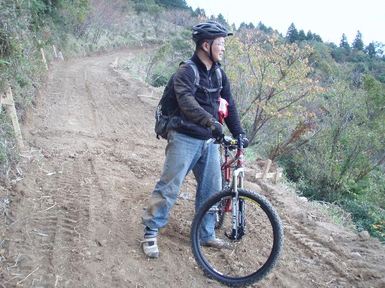 山デビューの赤ハマーFさん。ぶっ飛びチームと分かれて初心者はジープロードを下る・・・はずが、そこは富士見のAコースなみ(懐かしい)。水切りの盛り土で豪快にイっちゃいました。