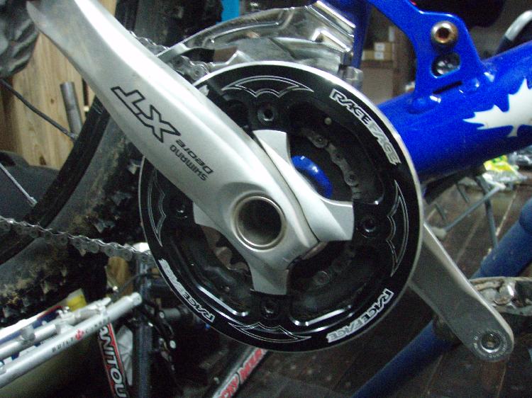 <写真>カナダと九州(の一部)では常識!?バッシュガード。トレイルライドに関してはアウターリングは殆ど必要ありません。これはお勧めのレースフェイス製。