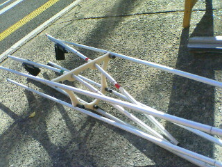 キールバー(一番下のパイプ)からY字状にフレームが立ち上がり、そのままデッキ面を構成するフレームへ繋がってるのです。これが縦方向の剛性を上げています。